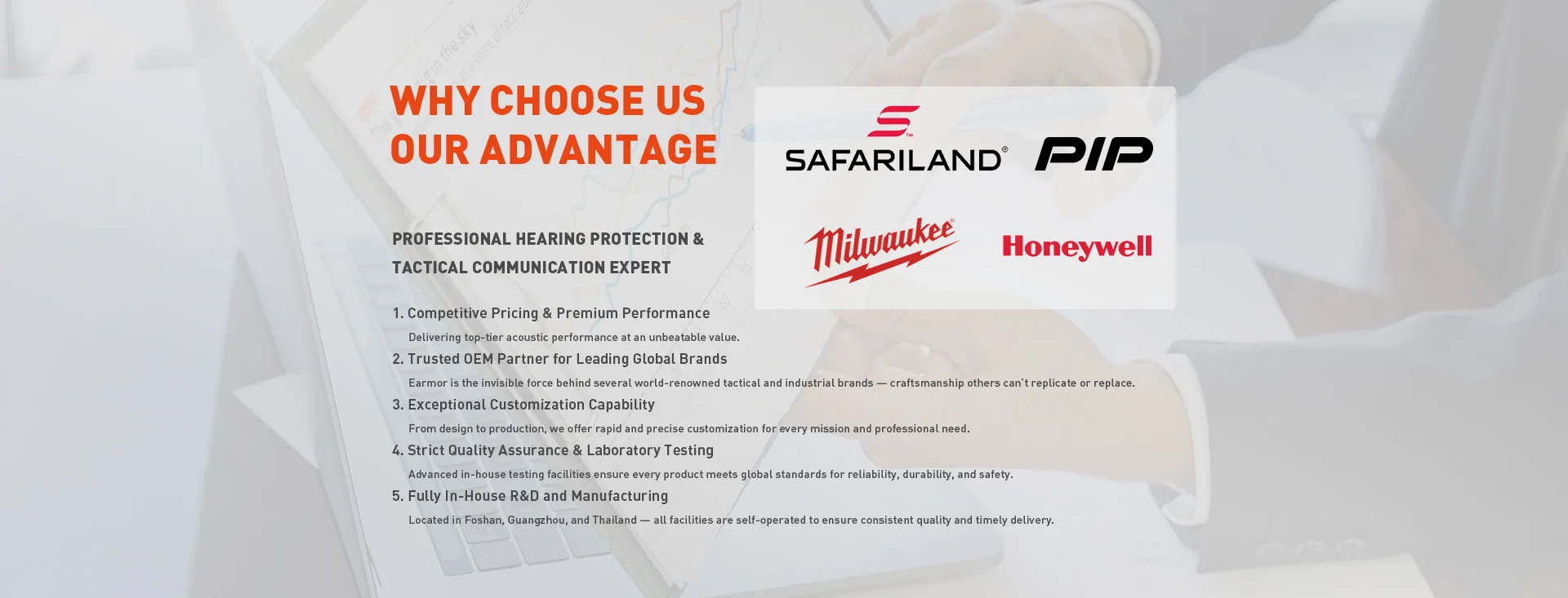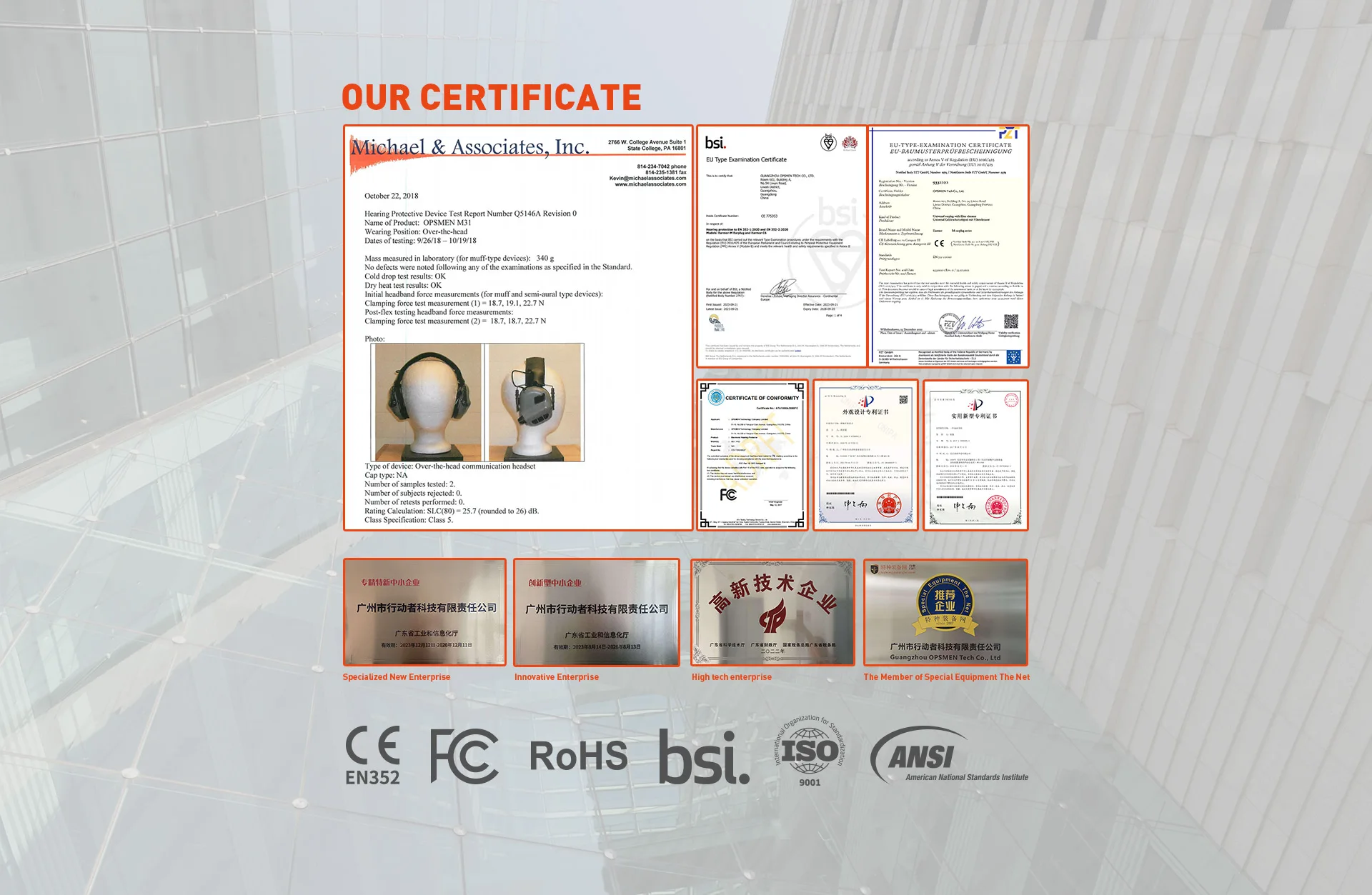 Prodotti principali: Paraorecchie, protezione elettronica dell'udito, tappi per le orecchie, auricolare tattico, tappi per le orecchie